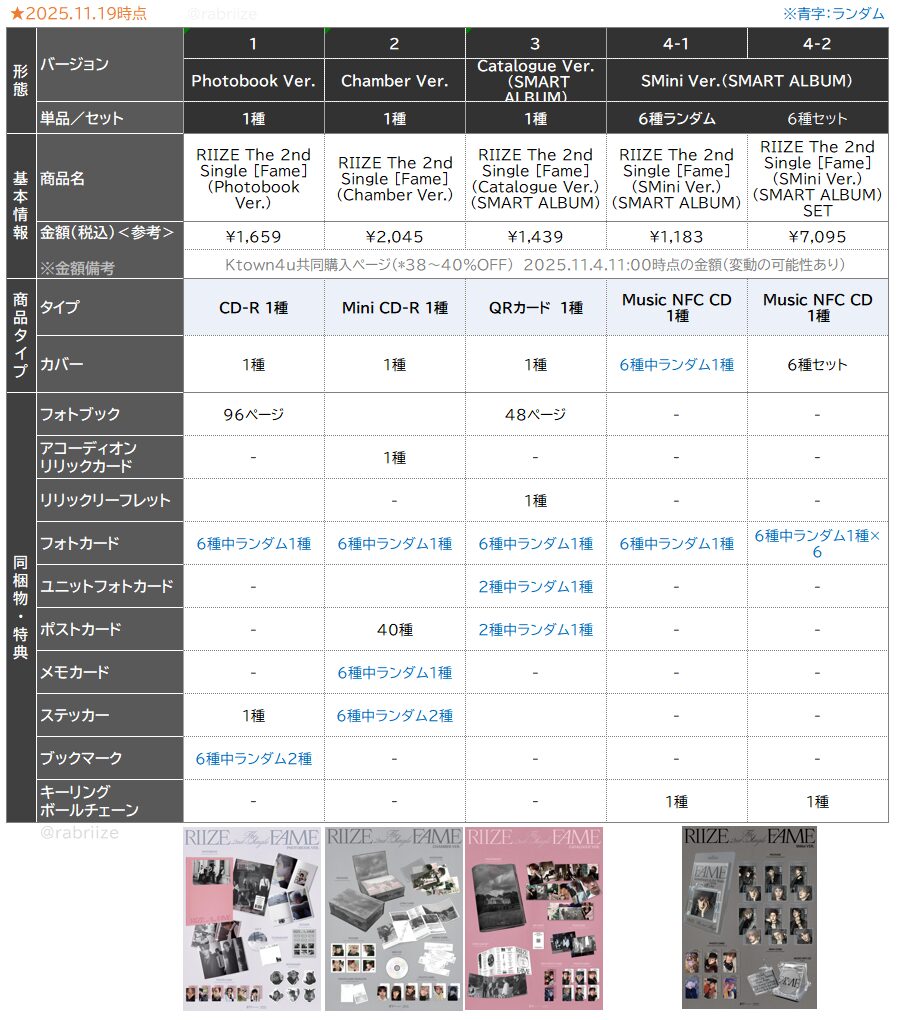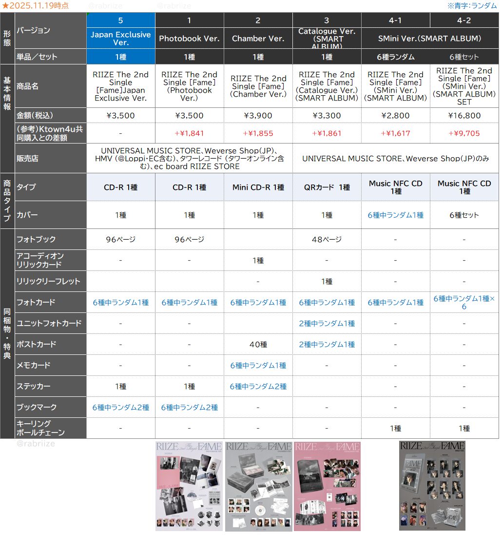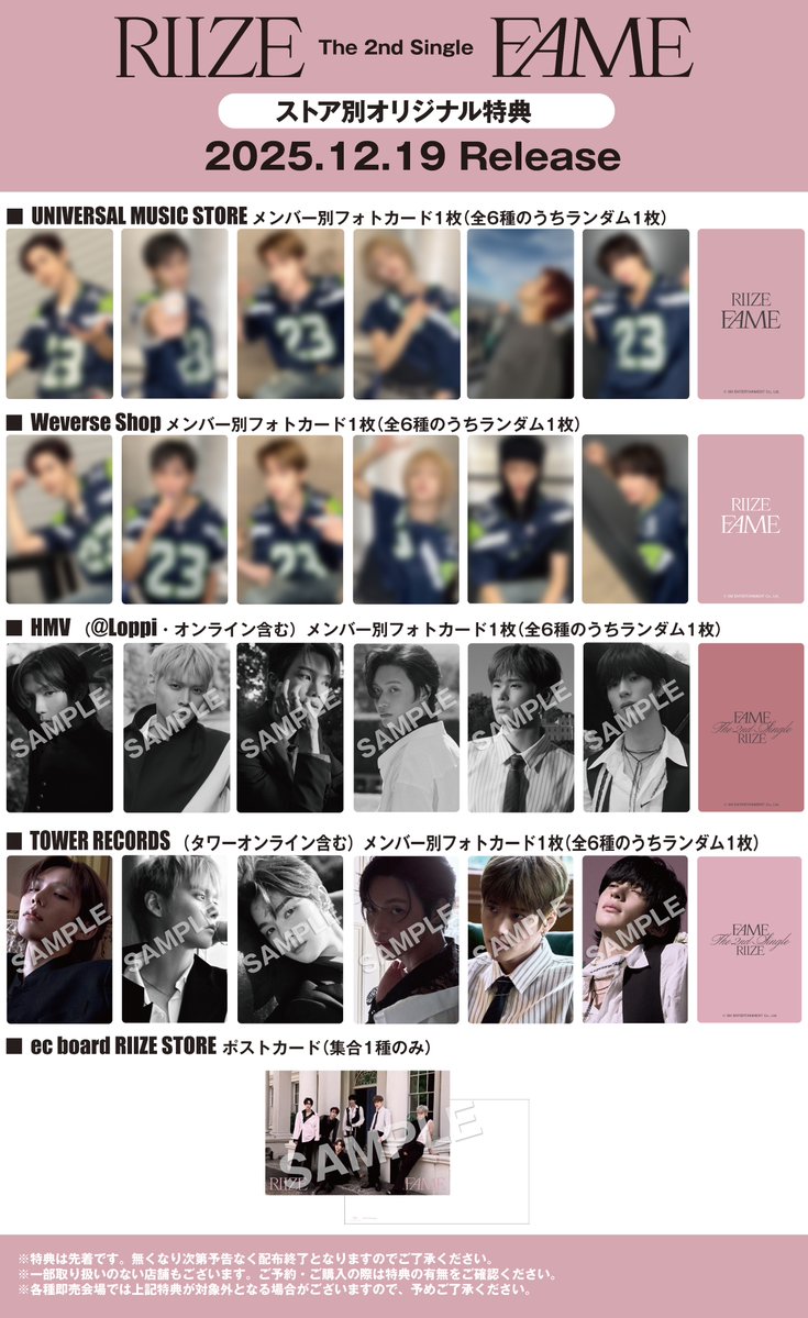 https://riizeofficial.jp/news/20251114/ - 20251106 The 2nd Single『Fame』を日本限定盤、日本限定特典付きで2025年12月19日(金)にリリース決定!