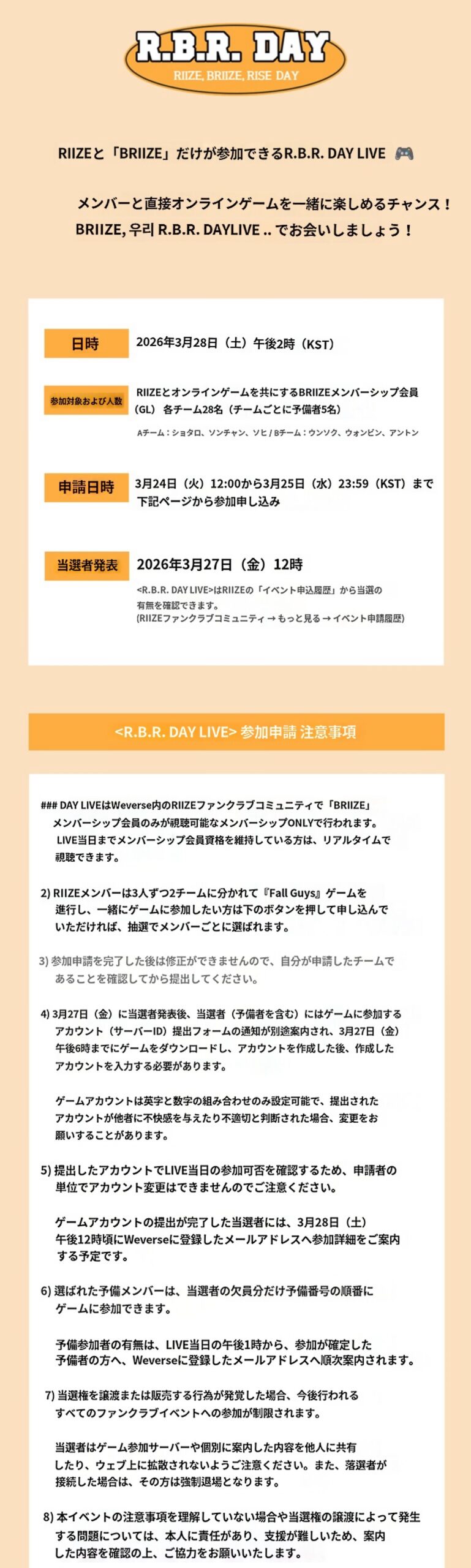 - イベント “R.B.R. DAY LIVE 🎮(3/28)”申込受付中【~3/25(水)】Weverse